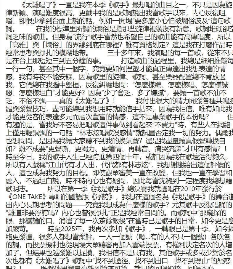 ▲艺东谈主林志炫(如图)日前生效重返中国音乐实境秀《歌手2025》舞台太阳城娱乐骰宝,却遭部分网友狠酸「唱得没情谊」,对此他在脸书发出千字文怒造反,捍卫多年唱功勤劳。